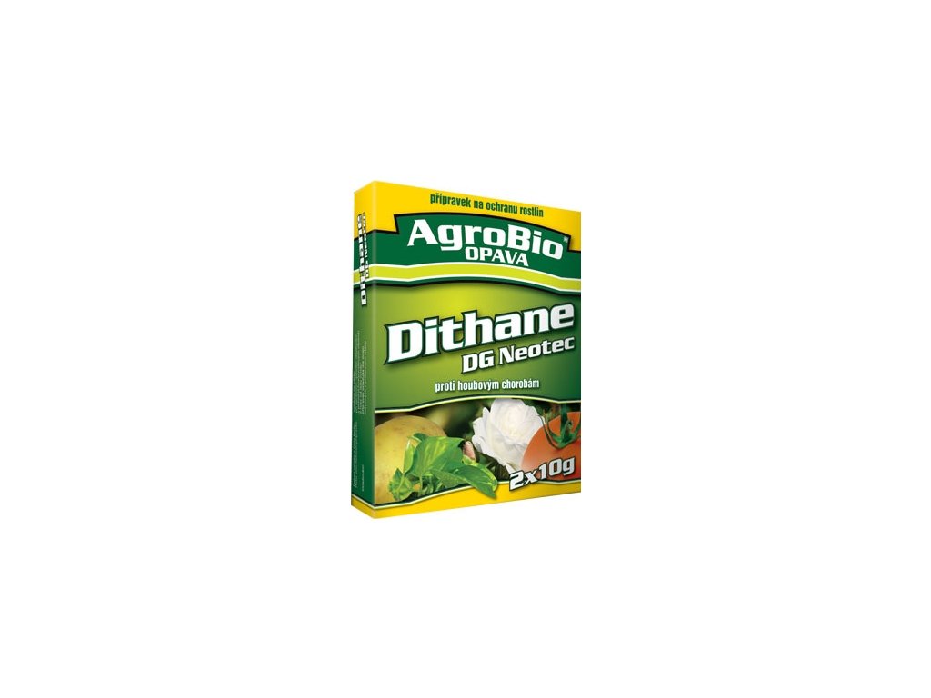 jedná se o kontaktní fungicid proti houbovým chorobám, rzím okrasných rostlin, ovocných stromů, révy vinné a zeleniny. DITHANE DG Neotec je kontaktní fungicidní přípravek, který je možné používat k preventivní ochraně proti širokému spektru houbových chorob (uvedeny níže u jednotlivých plodin). Obsahuje jednu účinnou látku - mancozeb, která náleží do skupiny ethylen-bis-dithiokarbamidanů. Na povrchu ošetřených rostlin vytváří film, který brání klíčení spor. Vyznačuje se dlouhým protektivním působením. Při ošetřování kultur, které vytvářejí silnou voskovou vrstvu a postřik proto z těchto rostlin stéká (brukvovitá a cibulová zelenina, růže, aj.) se doporučuje přidat do postřikové jíchy smáčedlo. Přípravek omezuje výskyt svilušek. Na vinné révě při včasném ošetření účinkuje proti červené spále vinné révy (Pseudopeziza tracheiphila).